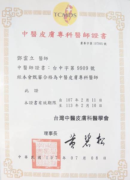 中醫皮膚科專科醫師證書