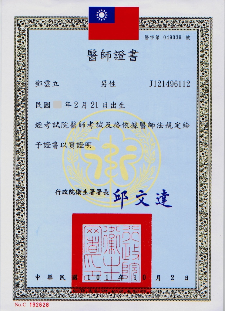 中華民國 醫師 高考及格、醫師證書