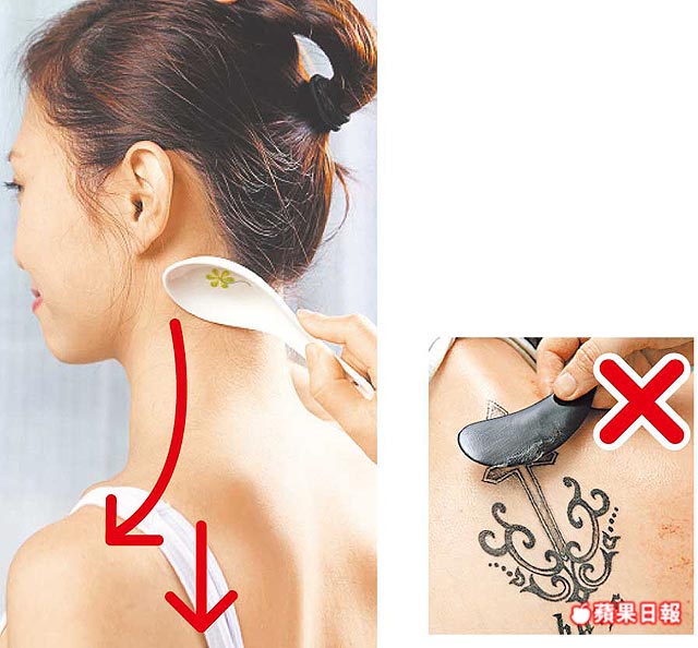 1周別超過2次,有傷口如剛刺青不宜刮痧。
