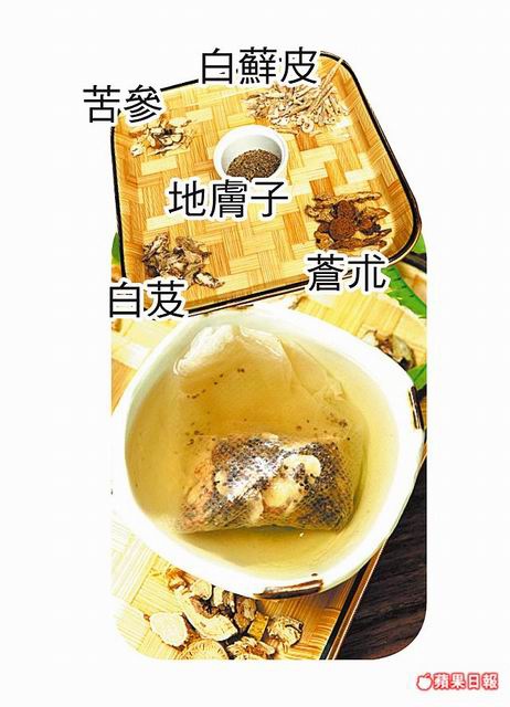 地膚子清熱利濕,白蘚皮和苦參清熱燥濕,蒼朮加強去油,白芨收斂止油。