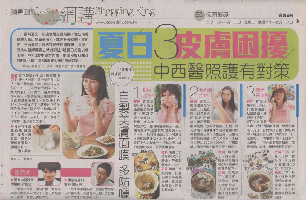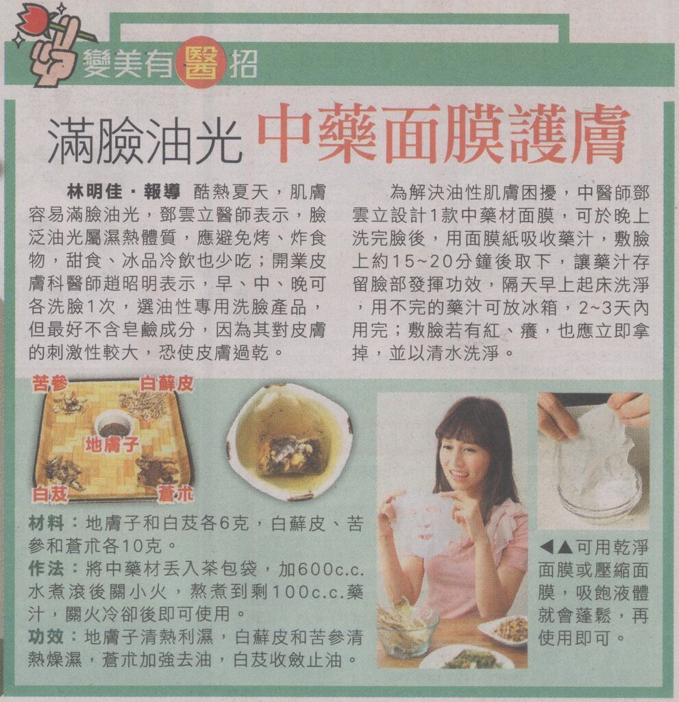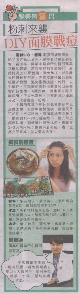 開業中醫師鄧雲立就針對這3種夏日常見皮膚困擾,設計3款中藥材面膜,